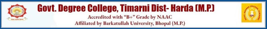 Government Degree College, Timarni is recognized for its commendable services in the field of higher education. The college was established in the year 1983. It is affiliated to Barkatullah University and accredited with “B+” grade by National Assessment and Accreditation Council since 2006. In its last accreditation process in 2016, it has been credited ‘’B’ grade. It is recognized by the UGC Act under sections 2f and 12B. The college is run by the government whose main motto is to “Dispel Ignorance”. It has been catering to the academic needs of the student of remote rural villages in the periphery of Timarni town. It also goes to the credit of the college that most of the girls prefer to study here in spite of existence of various private colleges. The college is situated at the national highway connecting Betul and Indore. Institute has a lush green campus spreading in 10117sq.meters which is situated in the outskirts of Timarni Town on National Highway 59A Indore-Betul Road. Institute has adequate Infrastructure and physical facilities for teaching and learning viz., classrooms, laboratories, well equipped with ICT facilities and learning resources. College has 19 regular classrooms with ICT facilities, Chemistry lab, Physics lab, Botany lab, Zoology lab , 2 Computer labs, Wi-Fi campus and CCTV cameras at different places. The college offers Nine Undergraduate Programs and Five Postgraduate Programs. The college focuses on introducing innovative practices, enhancing quality and instilling social responsibility. Regarding games and sports students of the college have participated and excelled in different games at the National, State and University Levels. The college has a library with a good number of books, major newspapers and magazines. Institute also has an e-Library and it offers remote access to library facilities through INFLIBNET. e-Library is functioning from dedicated library space, well equipped with IT Infrastructure. Library is partially automated using SOUL (E-Granthalay)version 2.0. It is user-friendly software developed to work under client-server environment. Library is Wi-Fi enabled, and remote access is provided through remote access NLIST, Shodhganga, Shodhsindhu, repository of content related to syllabus, books Newspapers and Journals